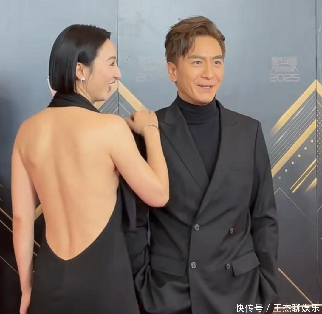 放眼整个盛典,TVB 男演员大多个头不算高挑,但女演员们个个高挑明艳。在礼服选择上,香港女艺人似乎比内娱演员更为大胆,当晚走性感路线的不在少数。高海宁与马国明一同出席,1 米 72 的她本就身材高挑,再搭配高跟鞋,个头与马国明不相上下。她的黑色礼服正面看似平淡无奇,后背却暗藏设计亮点,不过搭配的发型与大露背礼服的适配度略显一般。与高海宁一样敢于展现身材的还有陈自瑶。她梳着盘发,搭配金灿灿的耳饰,衬得脸庞明艳动人。身上的黑色礼服虽低调,设计却别具一格:单肩挂脖款式,胸口设有心机镂空,裙摆开叉至大腿根,脚踩黑色高跟鞋,身材曲线尽显。陈自瑶与王浩信的感情状况一直成谜,两人从未对外回应,但从她在红毯上自信大方的模样来看,如今生活状态良好,正专注于事业发展。TVB 女明星在礼服的颜色和款式选择上,眼光出奇地一致,大多以黑色为主。彼此间的设计各有侧重:你露左胳膊我便露右边,你的裙子左腿大开衩,我便右腿大开衩。蔡洁同样选择了黑色开衩裙,凭借高挑身材穿出了专属韵味。张曦雯的礼服比蔡洁更为出位,前面是挂脖设计,领口开至肚脐位置,后背设计格外清凉,仅靠一根细细的裙带勾勒线条。模特出身的她身高 175 厘米,身材保持得极佳,身上毫无赘肉,后背光洁丝滑,有网友调侃 “若是有这般身材,直接贴个创口贴就能出镜”。